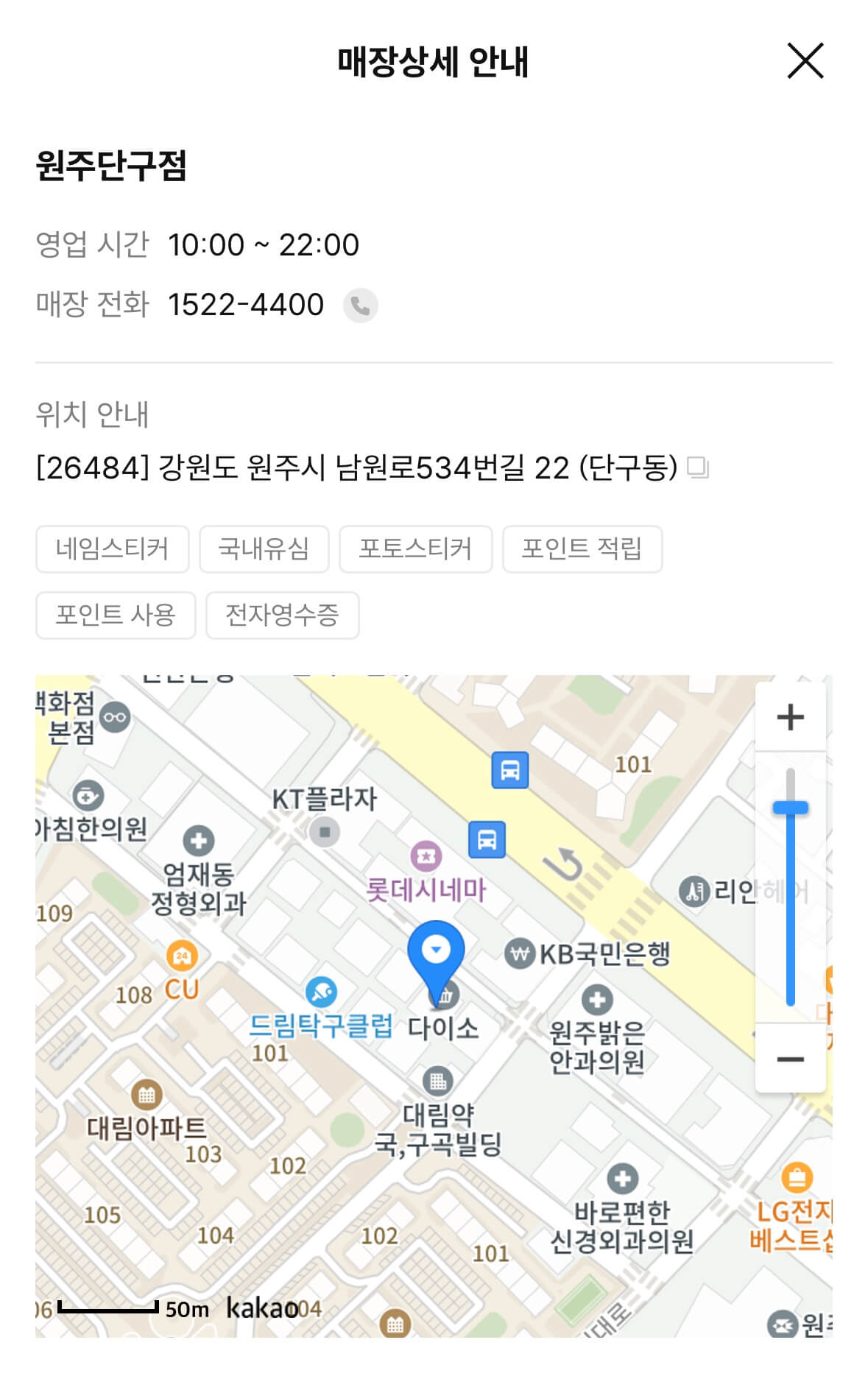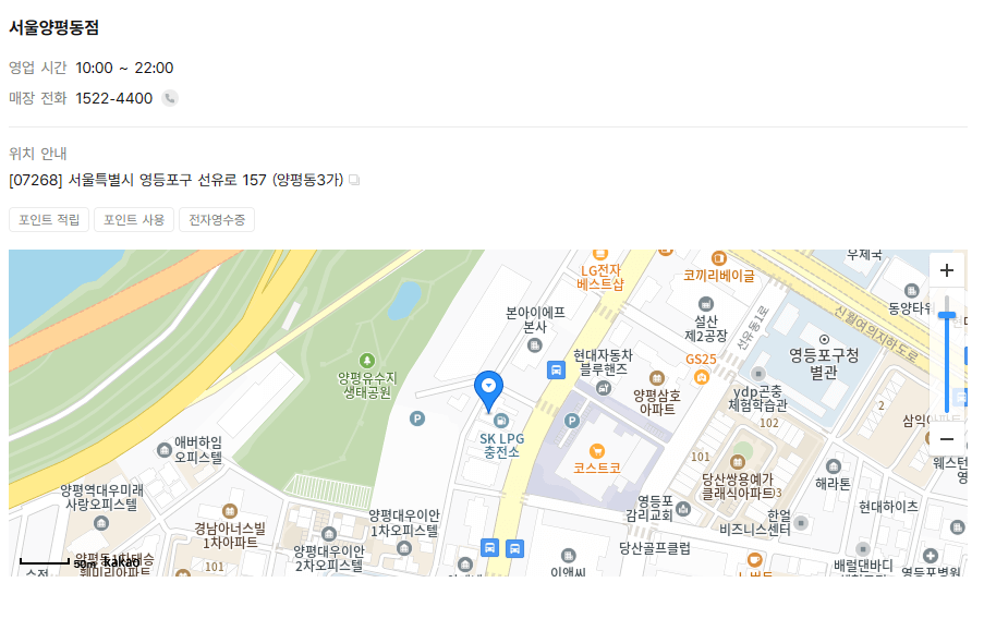 6. 매장상세를 클릭하면 영업시간 및 매장전화, 주소까지 나오니 쉽게 찾으실 수 있습니다.