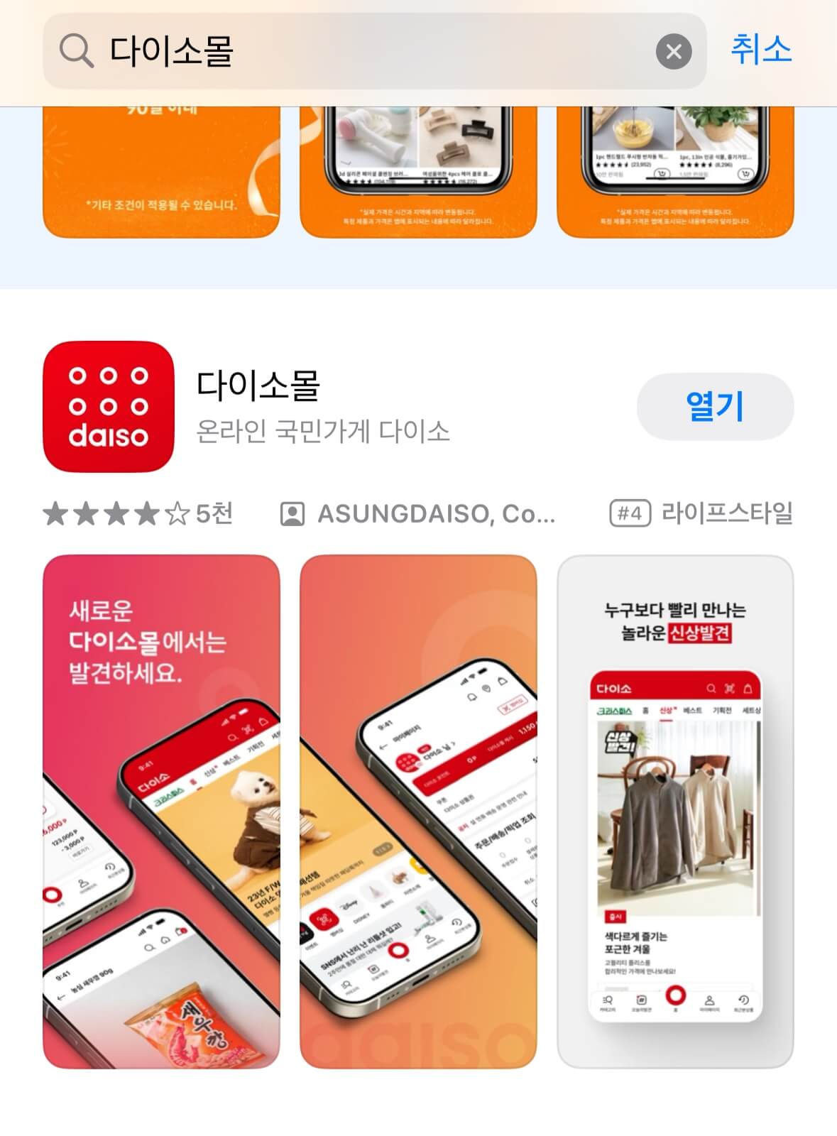 1. 다이소몰 어플을 다운 후 열어줍니다.