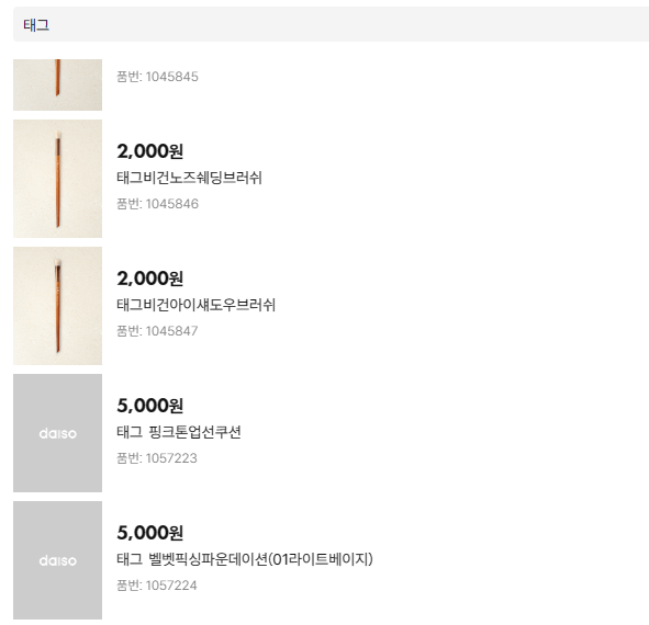 4. 저는 화장품 브랜드인 태그를 예를 들어 입력해 봤는데요. 관련 상품들이 쭉 나옵니다.