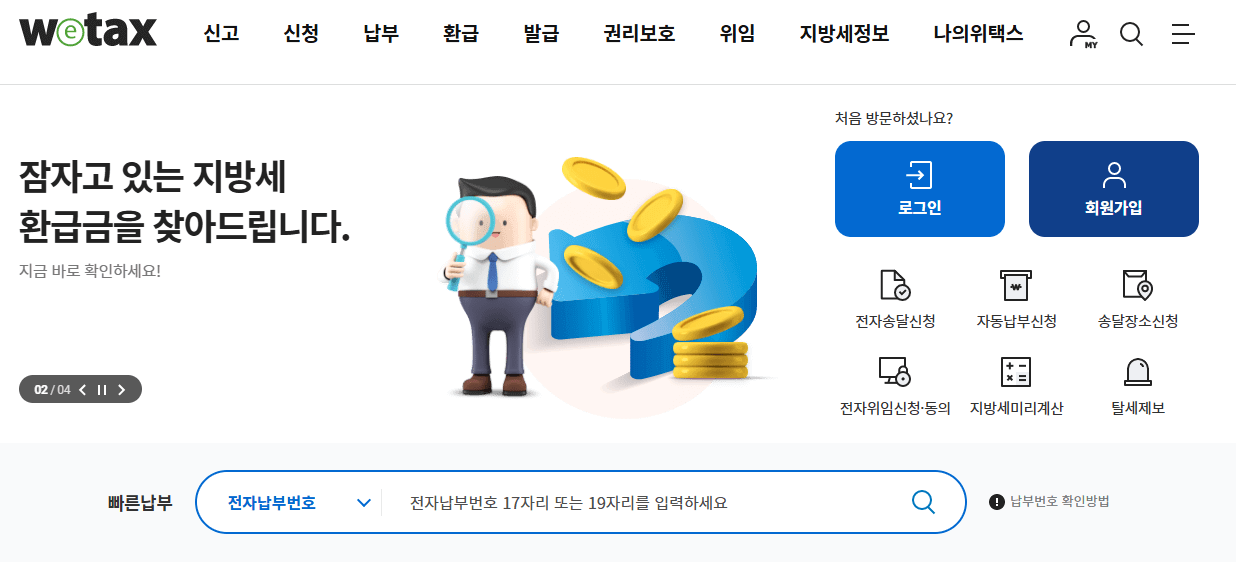 종이 고지서를 이용하여 입금을 해도 되고 서울시 이택스 또는 위택스를 통하여 납부가 가능하니 기간 내에 납부하시기 바라겠습니다.