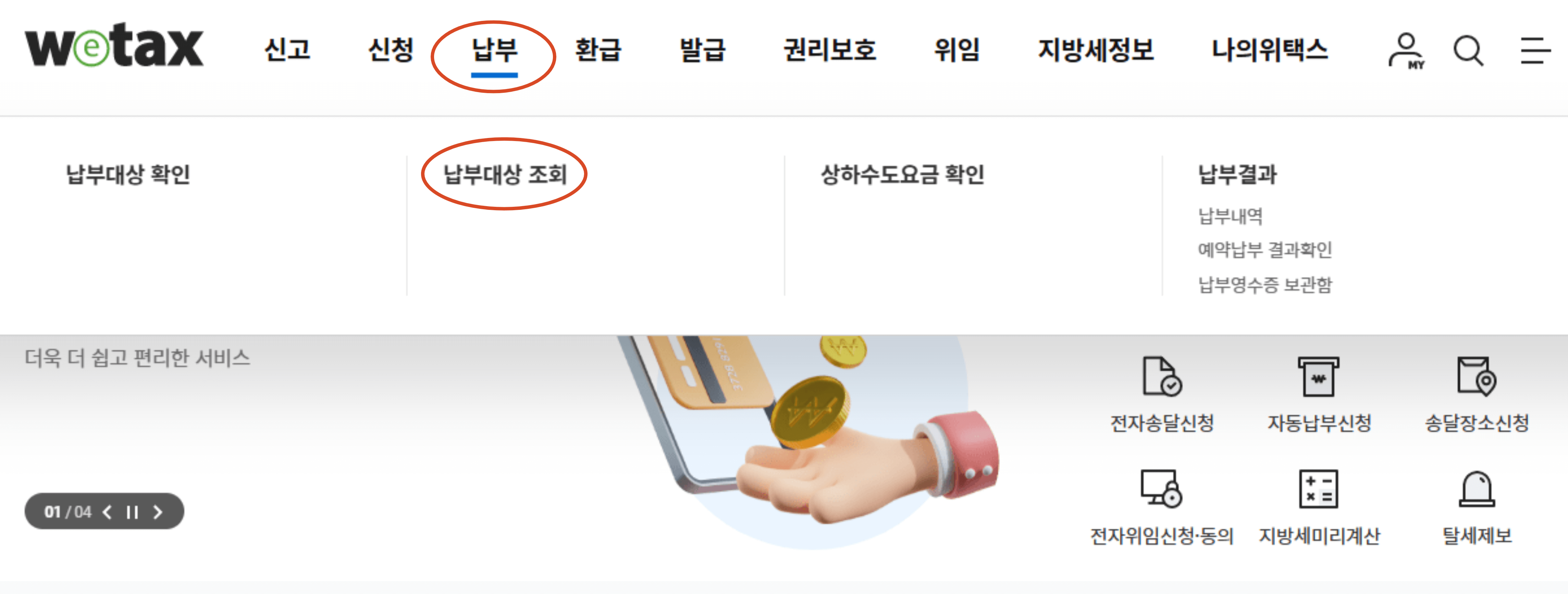 위택스 - 납부 - 납부대상 조회