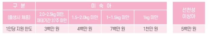 - 미숙아 : 출생 후 24시간 이내에 신생아집중치료실 NICU에 입원 치료한 경우